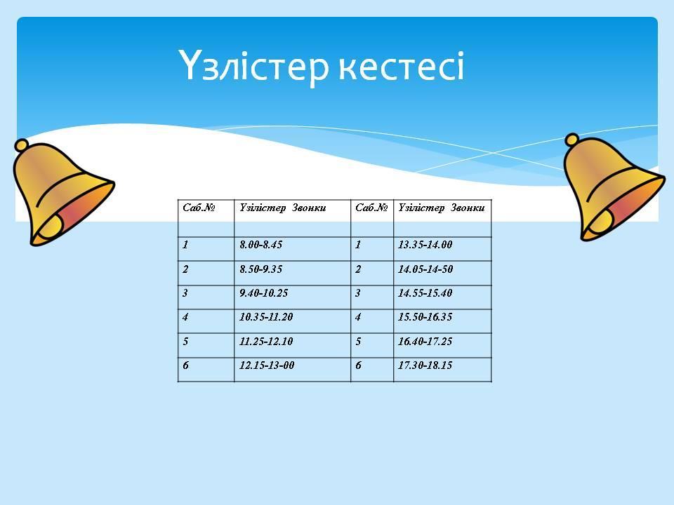 Сабақ кестесі мен қоңырау кестесі » "Алматы облысы білім басқармасының Қарасай ауданы бойынша білім бөлімі" мемлекеттік мекемесінің "Жамбыл атындағы орта мектеп" коммуналдық мемлекеттік мекемесі